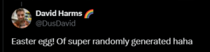 waar die zegt: "Easter egg! Of super randomly generated haha"